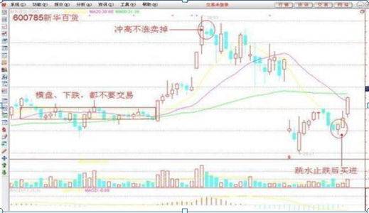 口诀1:不冲高不卖,不跳水不买,横盘不往还。