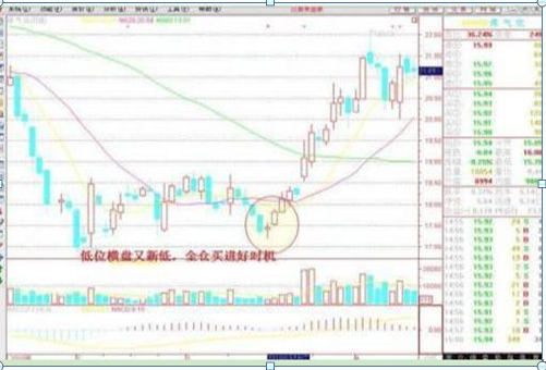 口诀4:高位横盘再冲高,收拢时机飞快抛;低位横盘又新低,全仓买进好时机。