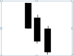 该样式时常出咫尺永恒高涨后的高位区域。该图形是由3根阴线构成,它的情况与三阳开泰违反,三根阴线呈蹊径状渐渐下降,阴线多为大阴线或中阴线,每次的开盘价都比前日收盘价要高,但却以着落收盘。在过程大幅高涨后的高位出现这种样式,后市着落的可能性较大。三根K线的跌幅越大,后市着落的可能性就越大。其样式如图2-50所示。